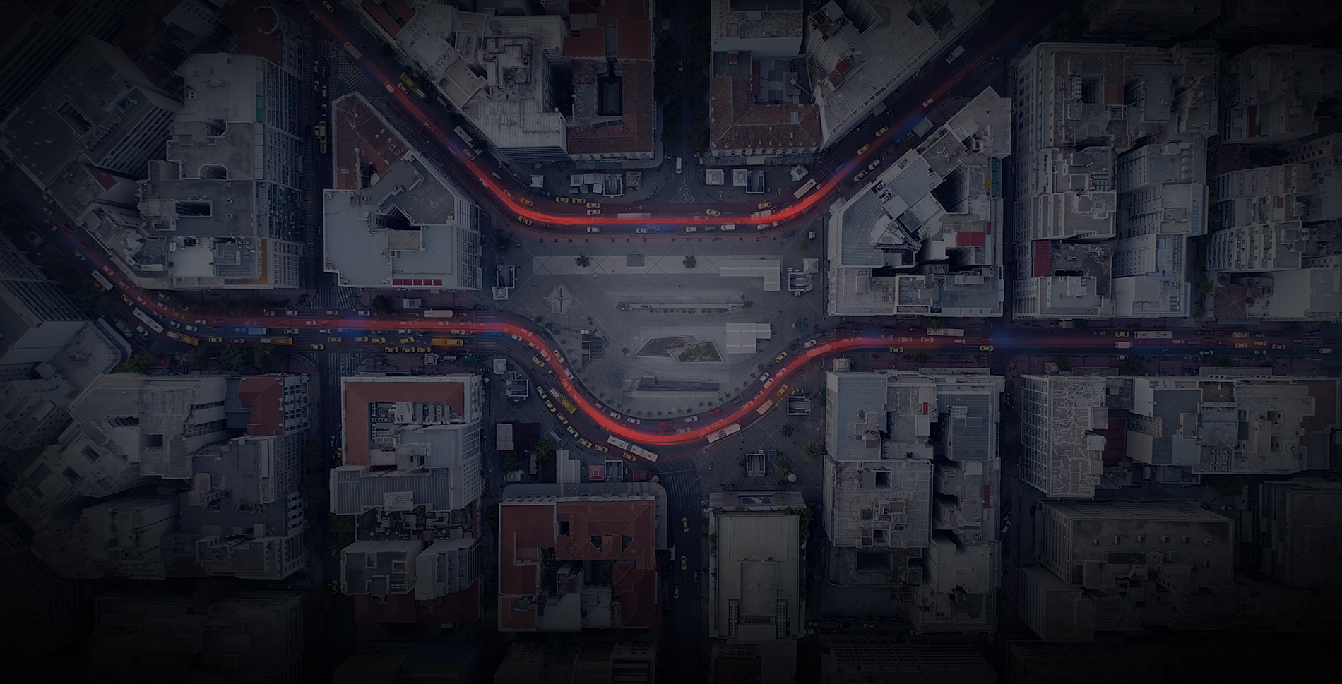A swarm of 10 drones hovering over the central business district of Athens over five days to record traffic streams in a congested area of a 1.3km2 area with more than 100 km-lanes of road network, around 100 busy intersections (signalized or not), more than 50 bus stops and close to half a million trajectories.